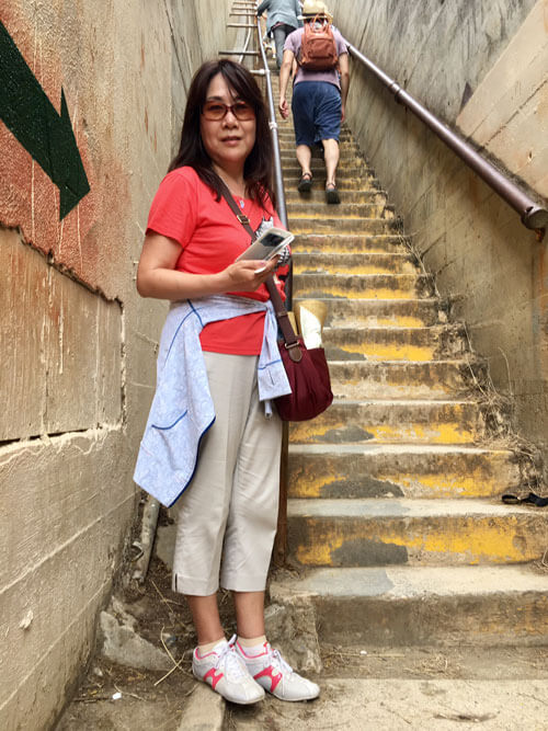 - 右:心臓破りの「急な階段」 早く頂上に着けますが、体力をごっそり持っていかれます。