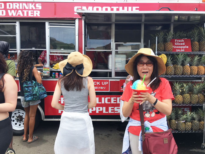ハワイは暑いので、入口までたどり着くまでで疲れます。