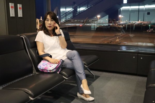 60代ハワイ旅行中のマザーハウスバッグとコーディネート♪